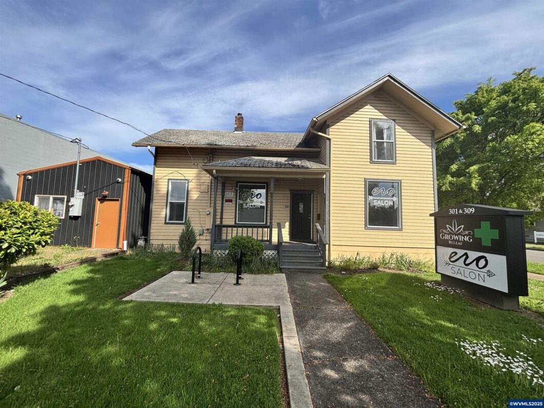 Rare opportunity to lease a fully turn-key dispensary on busy Commercial St in Salem! Approx 1662 SF metal building complete w/ private front office, large showroom, upstairs mezzanine/office, 2 private restrooms, back entrance, cameras & all the shelving & cases needed to operate. Owner is in negotiations to re-acquire license, or bring your own. Nice paved private parking lot. Excellent location close to Downtown, Keizer & Salem Parkway. Other uses applicable-Tenant to check use w/ the City. IC Zoning. Lease rate to be $2.00 NNN – tenant pays all separately metered utilities. Contact broker for showings. Semi attached (sealed) is also a 1446 SF 2 story building previously used as a salon & features open areas for stations, shampoo room w/ 2 fixtures, private restroom, breakroom w/ sink & WD hookup. Upstairs features 3 rooms.