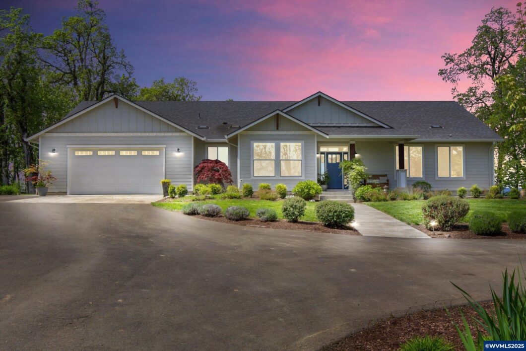 Enjoy sweeping Coastal Range views from this exquisite single-level, custom Craftsman on 5.25 private gated acres. 4 beds, 2 baths, open-concept w designer finishes. Fabulous kitchen with quartz counters & massive island, dbl ovens & propane stovetop. Heated floors, tiled showers, custom double sink vanities in BAs. 2 FP. Pollinator gardens incl maples, magnolias & endless perennials. UG sprink, drip irrig & full perimeter UG dog fencing. Forest tax benefits. A truly magical oasis!